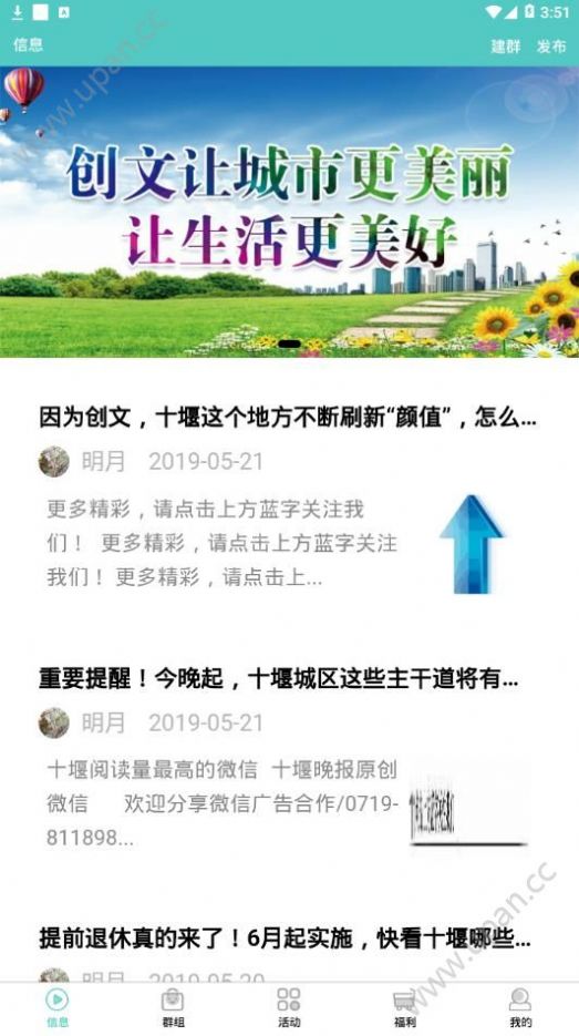 指尖创文app是一款可以在线阅读资讯文章的软件,在这里,大量的最新资讯供用户免费查看阅读,还有很多优质的生活文章,同时,设有本体生活娱乐模块,轻松满足你的各种需求,另外,还可以组织活动,兑换福利奖品,举报群组内的聊天内容,专为十堰市的创文工作者打造的专用的办公软能够让用户的工作更加的高效,能够在创文工作中更加的便捷,将创文精神传播到每一个人心中,有需要的用户赶紧下载吧!