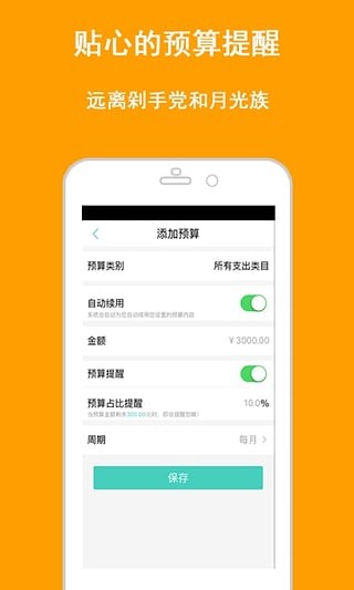 3、财务管家:现金、储蓄卡、信用卡、交通卡和支付宝等多个币种资金流向清晰明了,花钱攒钱心中有数,超支及时提醒;