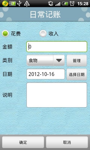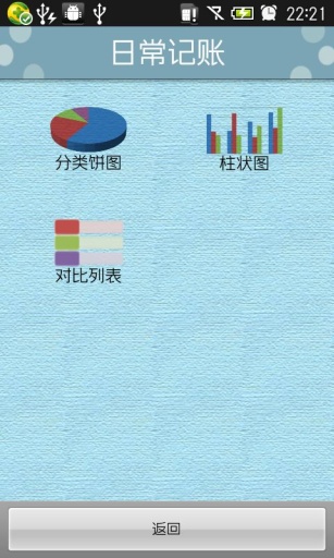 日常记账是一款手机记账理财软件,日常记账可以帮助您管理日常财务收支情况,随时随地记上一笔,让您清楚地知道钱花在什么地方了。日常记账是日常生活中需要记账的软件,而且笔记记录十分的详细,做到每笔消费都有记录。赶快下载使用吧!日常记账为日常消费收支提供记帐服务,并对每月消费进行图表统计,提供密码保护功能,防止别人不小心看到你的财务记录。本应用本着简单易用的原则,尽量把复杂度降到最低,让您在候车、超市排除甚至在洗手间都可以记录当日消费情况,做到每笔消费都有记录,减少不明不白的开支,在生活中量入为出。