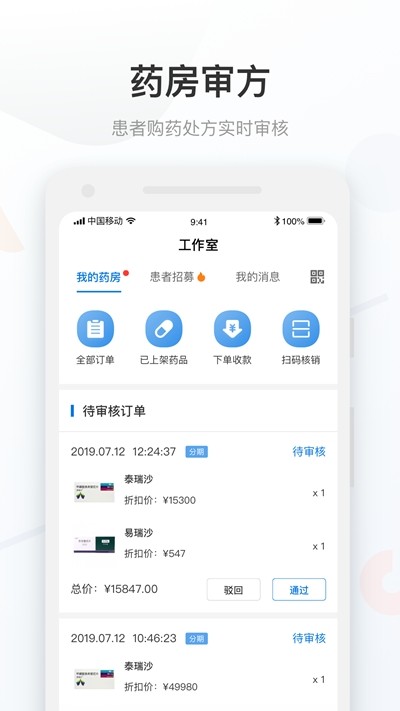 药师可实时审核患者购药需求提交的处方;
