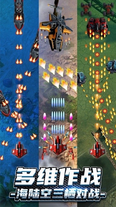 1、任意三选一的升级作用,让战机的攻击方式在作战中随意配搭,全部的进攻都笔走龙蛇,可以在凶险的?r刻保护你,给你战斗更轻轻松松。