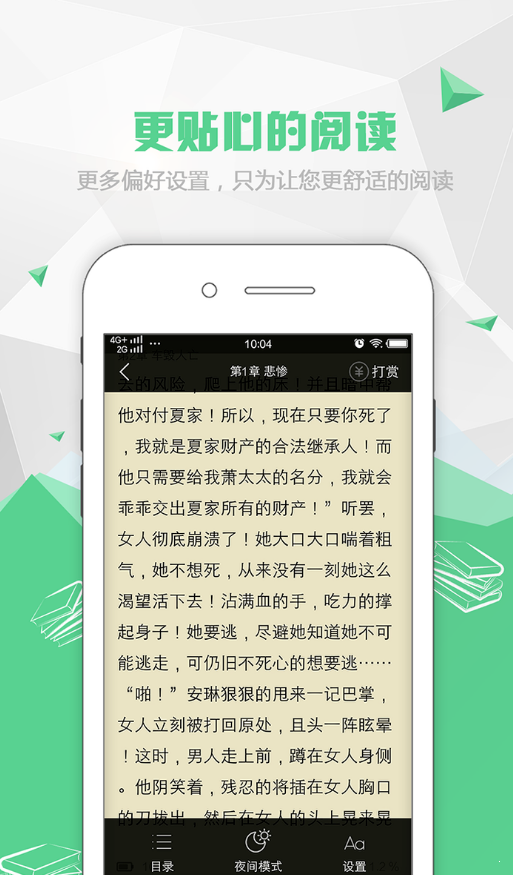 3、多样化的阅读版式设计,自定义的背景格式等,还有护眼模式保护你的视力;