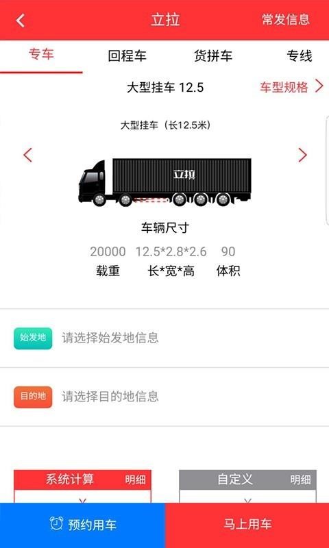 2、多样化的车辆信息,专车、回程车、货拼车、专线车等等;