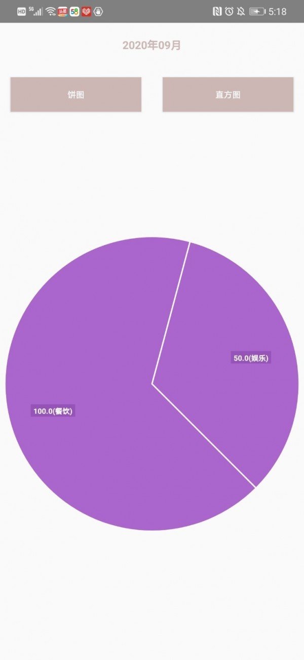 4.预览APP统计的饼状图,清楚的指导自己的消费金额;