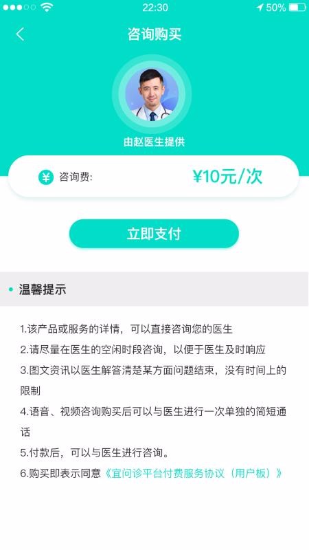 4、用户咨询医生之前可以在线支付咨询的费用,这里支持使用线上钱包的方式付款;