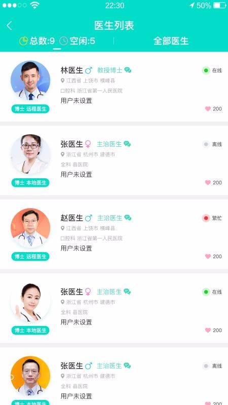 2、医生种类齐全,不管是擅长哪一个领域的医生都能在这里找到以满足多数人问诊需要;