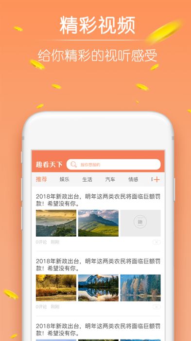 趣看APP是一款新型模式的生活养生情感的app。趣看APP为用户提供生活小妙招养生知识,让用户可以了解平常生活。趣看APP用户可以关注自己喜欢的主题,还有搞笑段子、旅行等等。这款软件为用户推送全网最新最全的热点新闻资讯,足不出户就能了解天下事情,还能一边阅读一边赚钱,还有搞笑视频段子能够供用户来放松心情。不仅能增长见识、足不出户知晓,还有丰富的活动、福利、宝箱、奖励等帮助用户养成良好的阅读习惯,又能获取有趣丰厚的奖励。