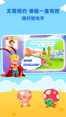 1.动画明星陪伴学习,孩子可以在奥特曼、丽莎公主、小动物的陪同下学习英语;