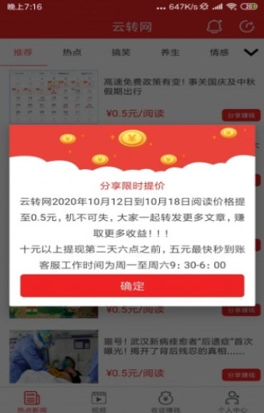 2、将文章转发出去,有人点击阅览就会获得相应的现金奖励;
