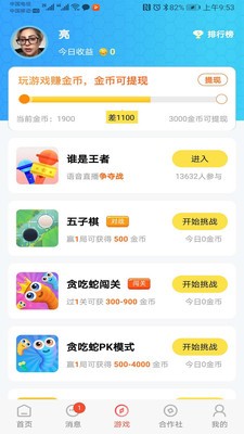 2、为大家打造了海量的精品小游戏,谁是王者、贪吃蛇、五子棋等都有,通关可以获得奖励