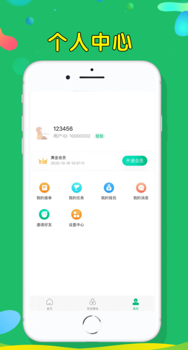 消息:APP会将您完成任务、资金提现的消息发送给您,您可以在线及时的查收。