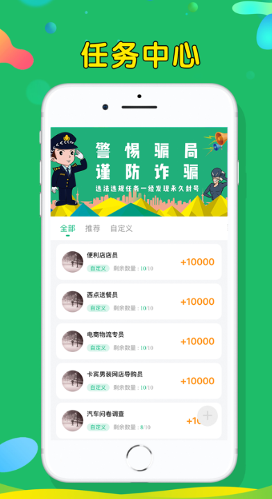 任务信息:查看APP提供的各个任务详情,完成任务赚取悬赏奖励;