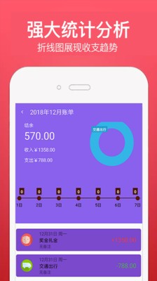 3、用户可在app上记录每日收支信息,自动生成图表管理自己的消费和收入支出。