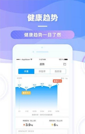3.以图表的数据展示,可以更方便的了解自己的身体数值变化。