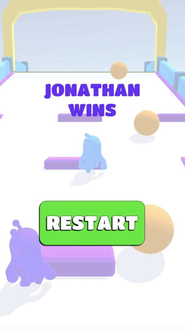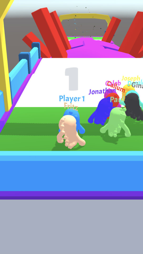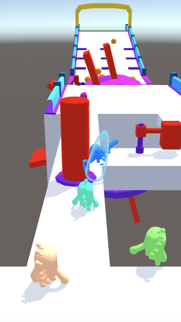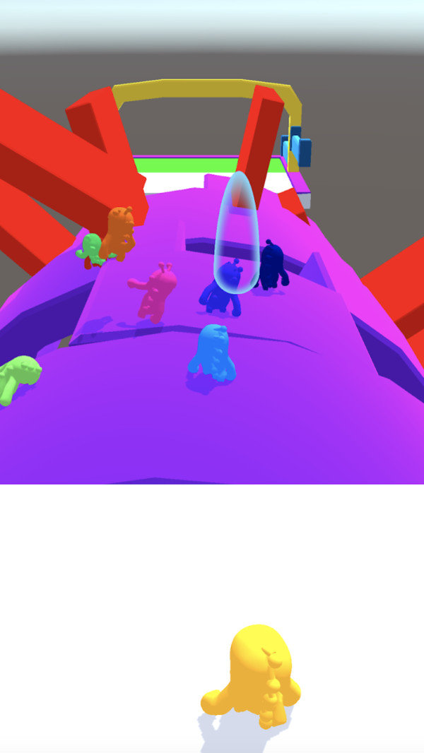 1、游戏卡通画风,超级可爱的糖豆人有不同的皮肤,颜色区分,在赛道上结盟。