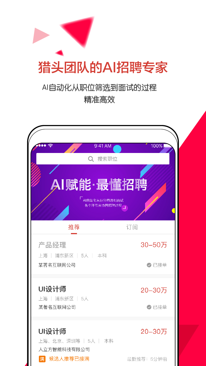 根据招聘需求描绘职位画像,大数据匹配智能推荐专业猎头;