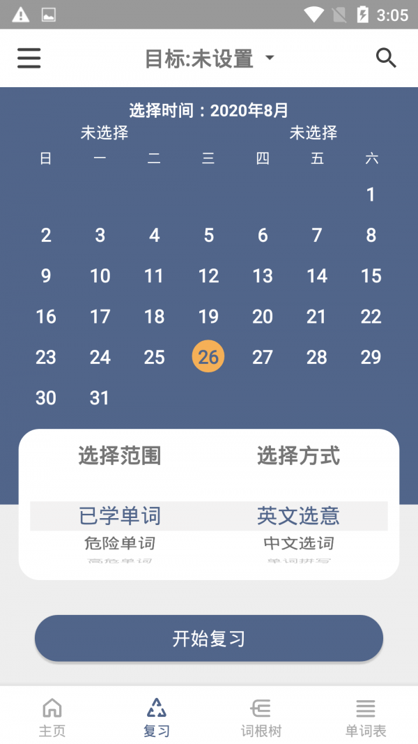 4.只需要设置目标并开始,本软件会依据算法随时进行巩固复习。