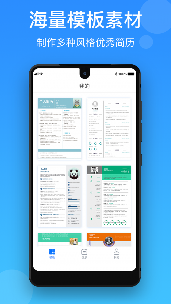 【最美简历模版】简历制作宝app超多款简历模板一键切换像美图秀秀切换滤镜一样简单,自动生成的完美简历排版。