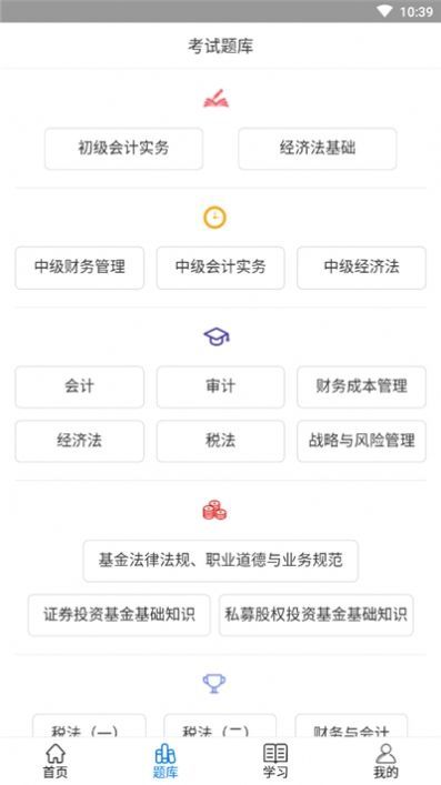 3、会计考试对应的题库都能在此找到,不仅可以学习课程而且可以练习题目;
