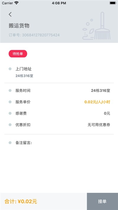 2、包含了多种跑腿服务项目,可以自由选择是否接单服务,能够获取相对应的酬劳