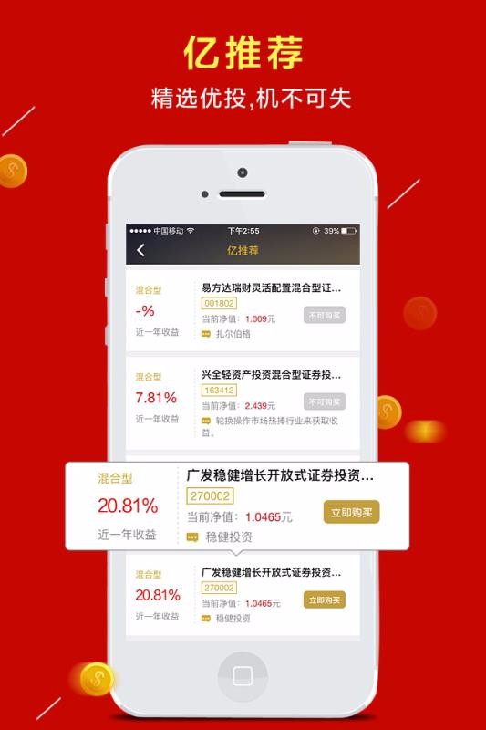 丰富的基金产品,投资项目非常的全面,让用户可以自主选择喜欢的投资项目;