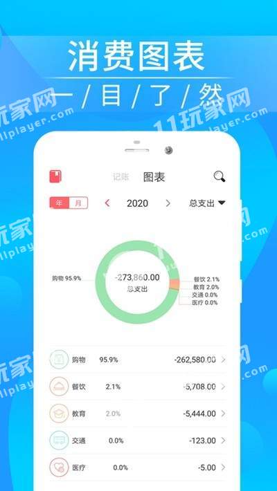 图形化呈现消费构成,透过趋势图与分类圆饼图,一目了然每周、月、年的花费情况;