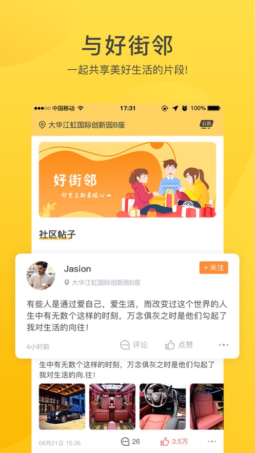 3、通过社区活动与社区公告,及时将最新通知告知用户,为用户提供和谐生活。