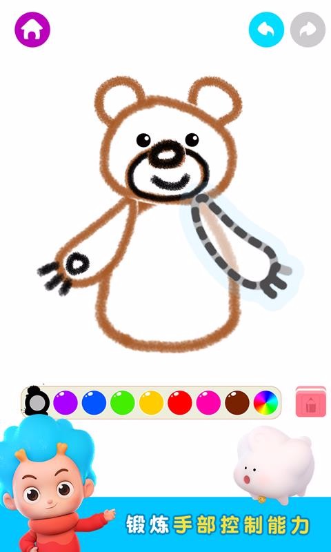 3、当孩子选择画笔的时候可以学习各种颜色,能够根据自己的喜好而自选这里任意的画笔颜色;