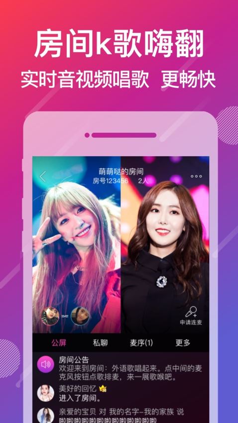「实时K歌」现场开房,实时K歌点歌排麦,聊天送礼,最畅快的KTV现场体验实时邀请好友,一起欢唱