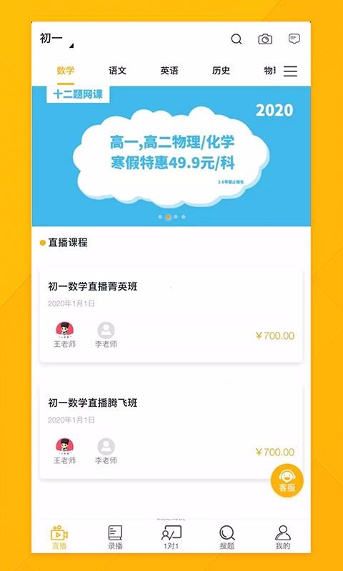 十二题网课app涵盖了k12阶段的各种文化课程以及各种小语种课程,有需要的用户随时都可以在平台上面找到符合自己的课程在线学习。平台上面有很多的直播课上也有很多的录播课程,用户可以根据自己的实际情况选择对应的课程学习,不同阶段的用户都可以满足,而且平台上面还有很多的题库,可供大家在学完课程之后练习。带来了超过千名教师在线进行教学,相信可以让学生们获得全面、靠谱的学习建议,甚至带来了拍照识题搜索答案的功能。