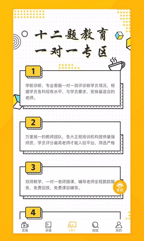 1、平台上面有很多的直播课程和录播课程,用户也可以选择一对一辅导教学;
