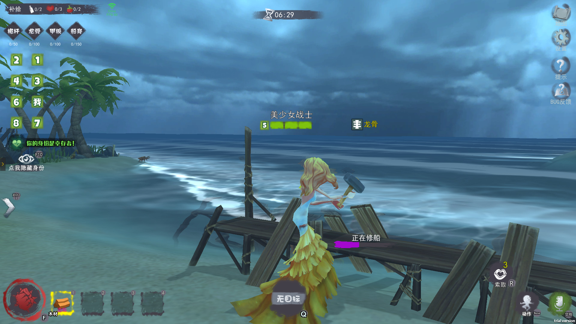 1、需要有人站出来带领大家一起造好船的四个部分,从而离开岛屿逃生获胜;