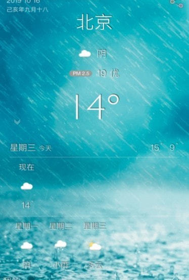 2.该软件将根据当天的天气情况更改背景。 天气背景将变为雨。