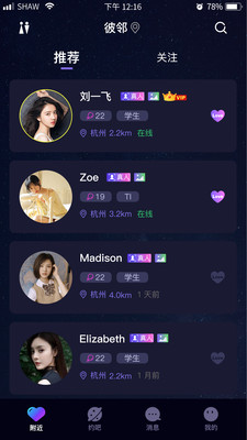 『高效交友』通过地理位置和兴趣爱好为你推荐最有趣的人。