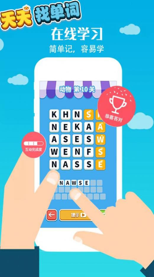 3、天天找单词每天只需几分钟时间,就能掌握日常新单词,并且牢牢记住。