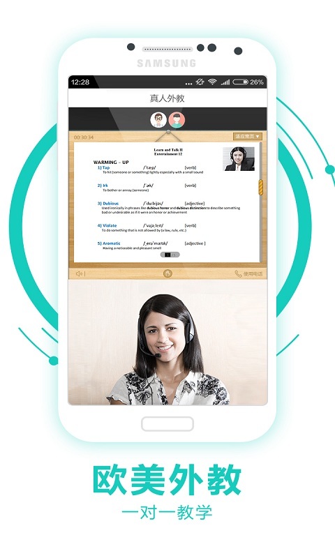 【手机上课】用手机即可和外教老师一对一进行视频上课;