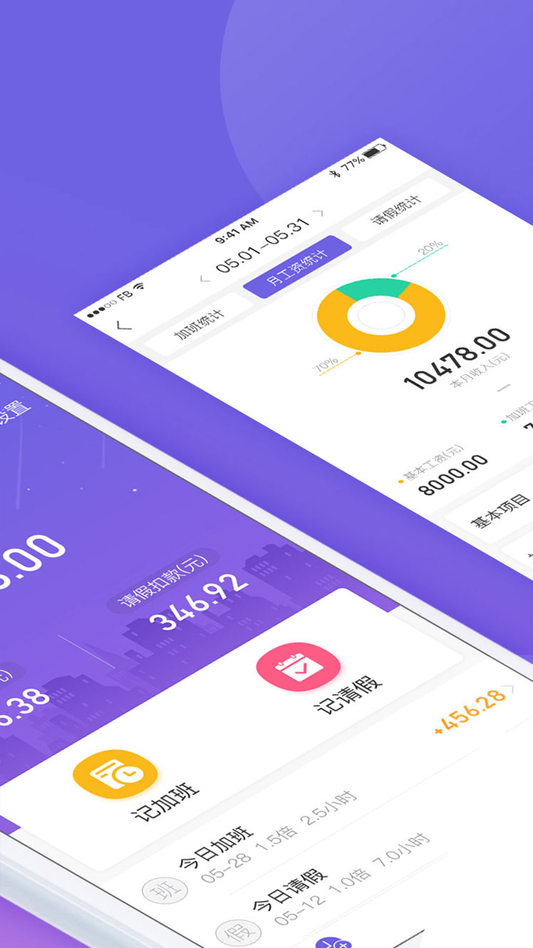 加班、请假记录清晰展示,收支账单一目了然,赚多少,扣多少,心中有数
