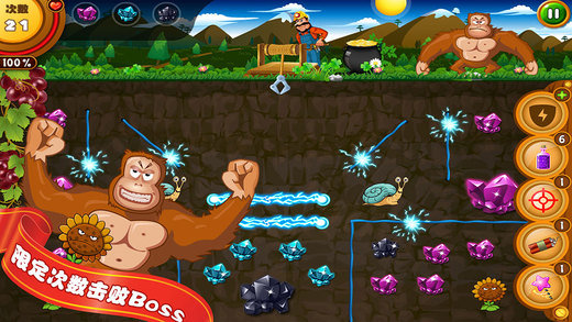3.你在采矿,你必须不断点击屏幕挖掘,探索越来越深入的底层的元素。