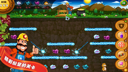 1.操作简单,在钩子摇摆的过程中,瞄准金子,点击屏幕时即会释出钩去抓取金子。