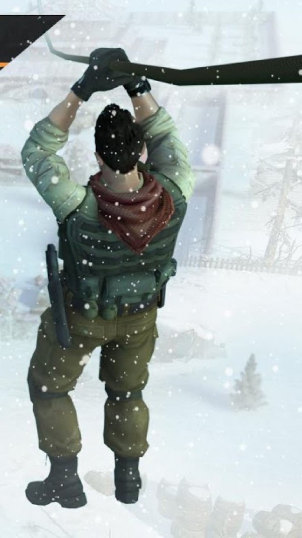 2.确保你潜入敌人基地,在这个冰雪覆盖的环境权伪装。