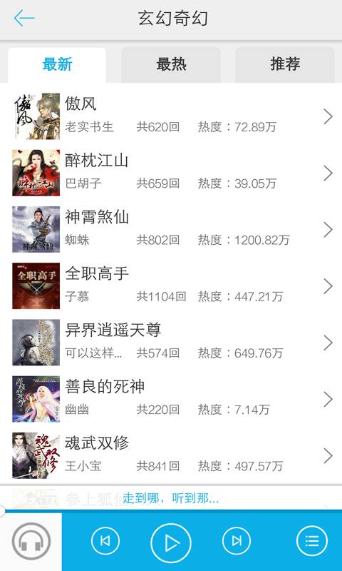 很多人都喜欢把阅读小说当成是一种休闲娱乐的项目,因为这种方式省钱,又能不让自己无聊。但就是有时候会看的眼睛累,严重一些的还会近视呢。所以小编就给大家推荐这款天寒听书,这是专门听书的地方,网上很多的热门小说都可以在这里听到,而且这里的每一部小说的配音都是请的专业人员配的,尽可能的给大家最好的听觉盛宴。再有就是使用本软件听书不用花钱,全场任何一部小说都是免费听的,还等什么,有需要的小伙伴赶紧来下载吧。