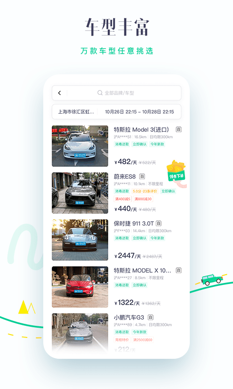 【海量车型】超过7000款车型供你选择,一定能租到满意的车。