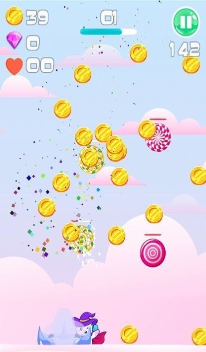 2、操控着可爱的独角兽来闯关,非常多的金币需要你来收集,大量的金币奖励从天而降。