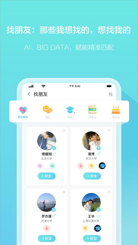 2.能够自动为你推荐同校的好友,可以批量的关注自己有好感的人;
