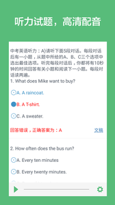 2、每套听力试题都有高清的配音,全真模拟考试流程,智能答题检测系统;