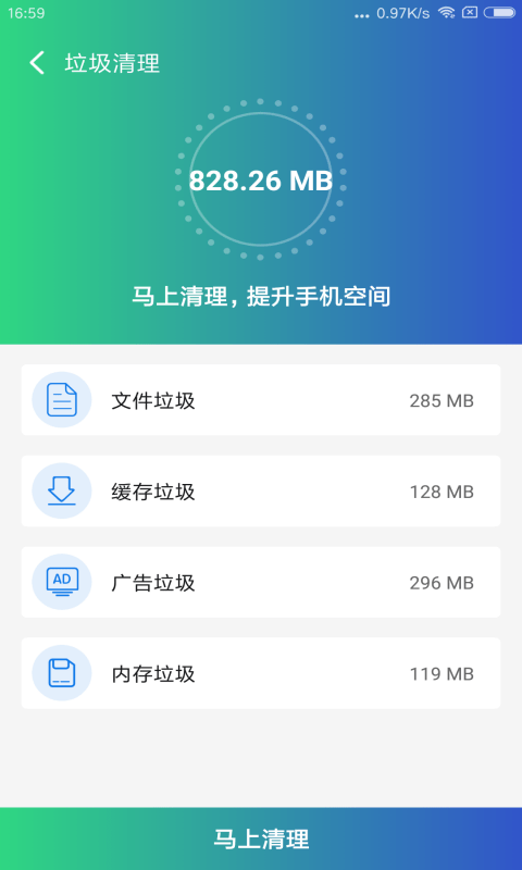 3、操作简单的手机清理软件,能够快速清理手机中的垃圾文件,通过一键加速。