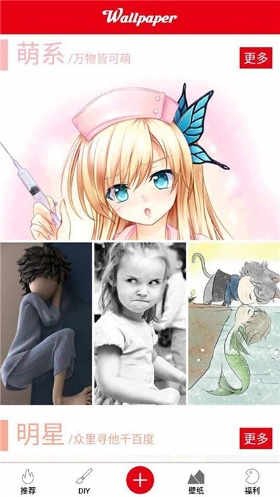 1、用户可以自己下载APP提供的手机壁纸使用;