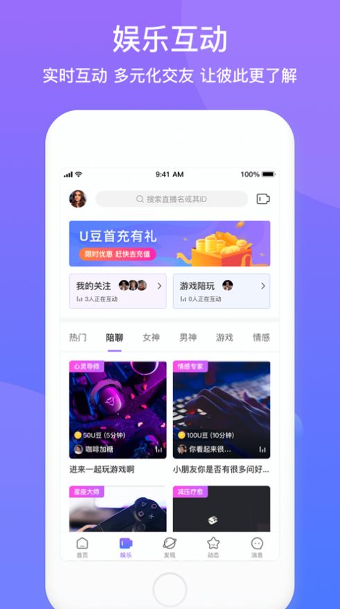 友期软件是一款拥有多种交友方式,例如视频,声音,实时聊天室,群聊等电竞社交的软件。为大家带来了非常多的交友主题,还能够在平台上寻找更多有趣的小伙伴一起来互动,需要真人实名认证通过,就能和大家一起来进行交流。在有效的短时间内匹配自己喜欢的游戏玩家进行聊天陪玩。你可以找到你最喜欢的小哥哥和小姐姐们一起来开开心心的玩游戏哟!感兴趣的喜欢游戏和社交的小伙伴们赶快来下载体验吧!