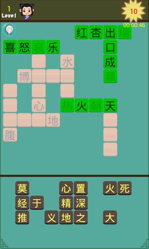 无限关卡模式,精心设计的成语测试,简单填空老少皆宜。