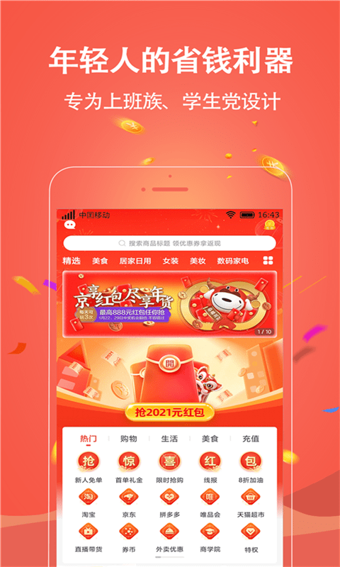 财省app精选知名品牌特卖,每日10点和20点上新,最高返利81%。确保正品、确保特价、限量抢购。在这里也能帮助很多的用户们轻松省钱,各大电商平台的优惠券一应俱全,也能帮助你在线上更好的来购物,吸引了很多用户们在手机上购买到超多低价折扣,还可以在手机上领取大额的优惠券,助力消费者快速搜索优惠券并领取福利,领券再购买产品,能够让商品交易价格更低,轻松降低了用户的生活购物成本;下单时抵现使用可以帮助大家节省不少费用。九块九包邮和更多限时秒杀活动等你来体验,分享商品也有返利红包可以领取哦!